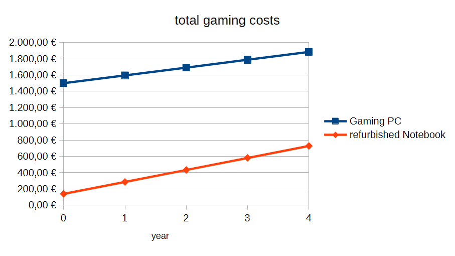 In the calculation for the Gaming PC the aquisition costs and the estimated power consumption is included.